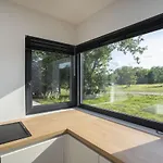 Découvrez le confort ultime dans la cuisine des villas Mondo Sole, équipée d'un réfrigérateur, d'un four et de la vaisselle.